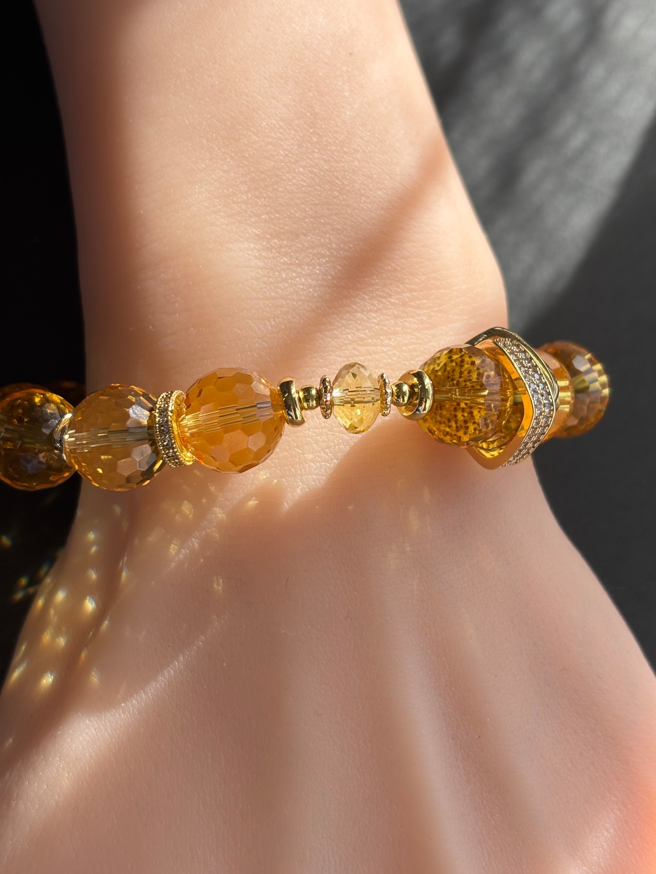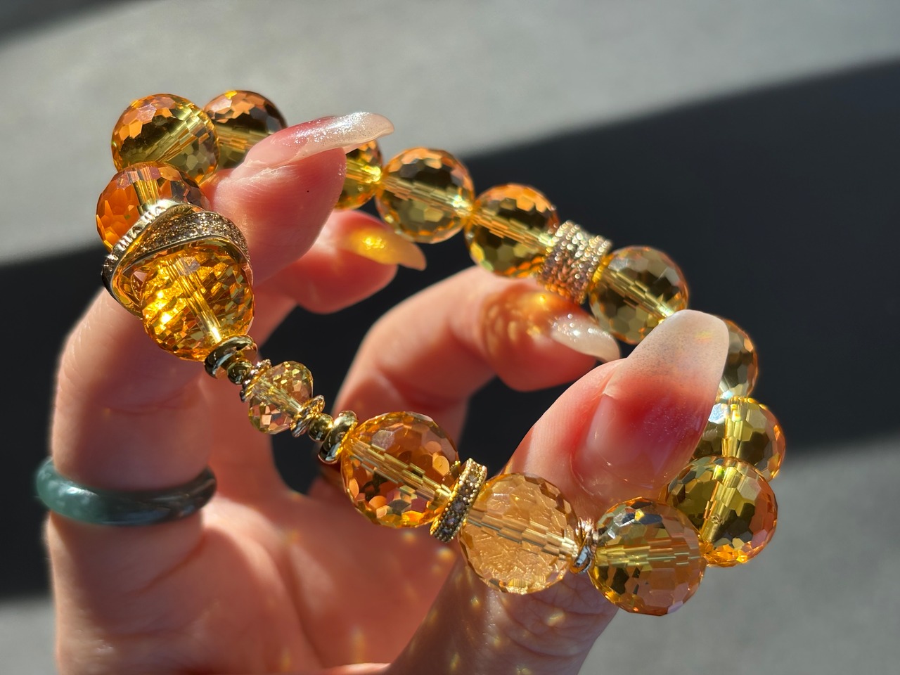 高品質のシトリンにミラーボールカットが施され更に眩しい輝きが増してまさに宝石!圧巻の美しさです(*^^*)