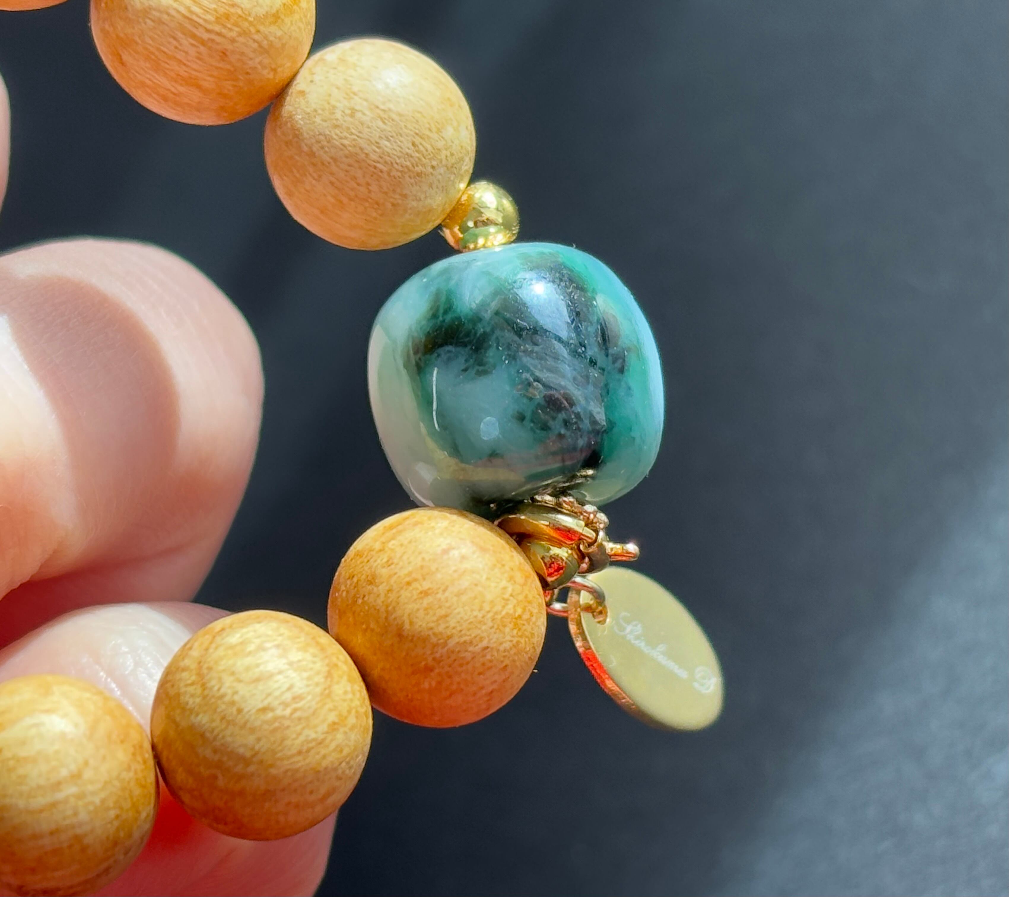 ミャンマー産地 翡翠 パロサント香木 デザインブレスレット