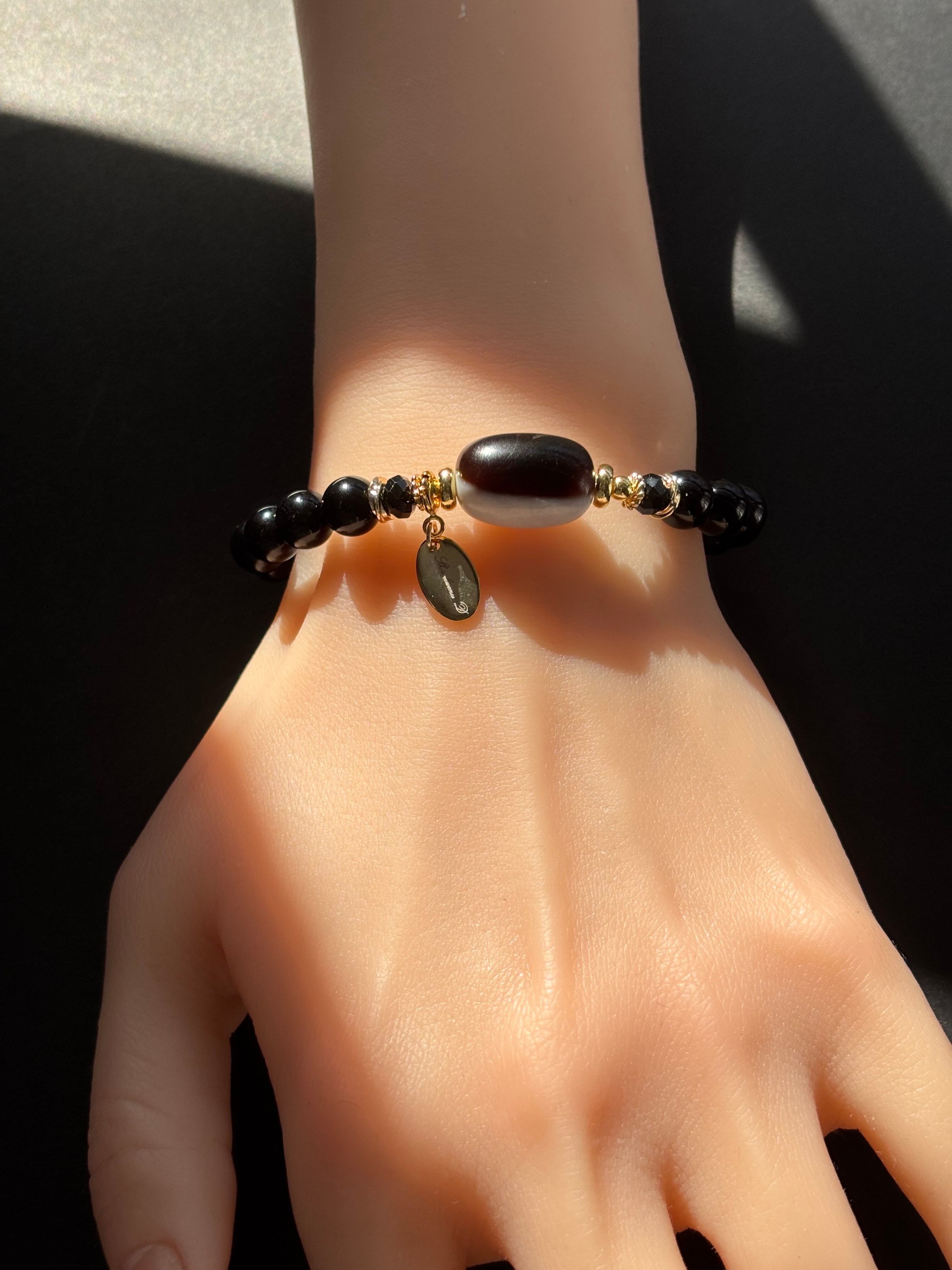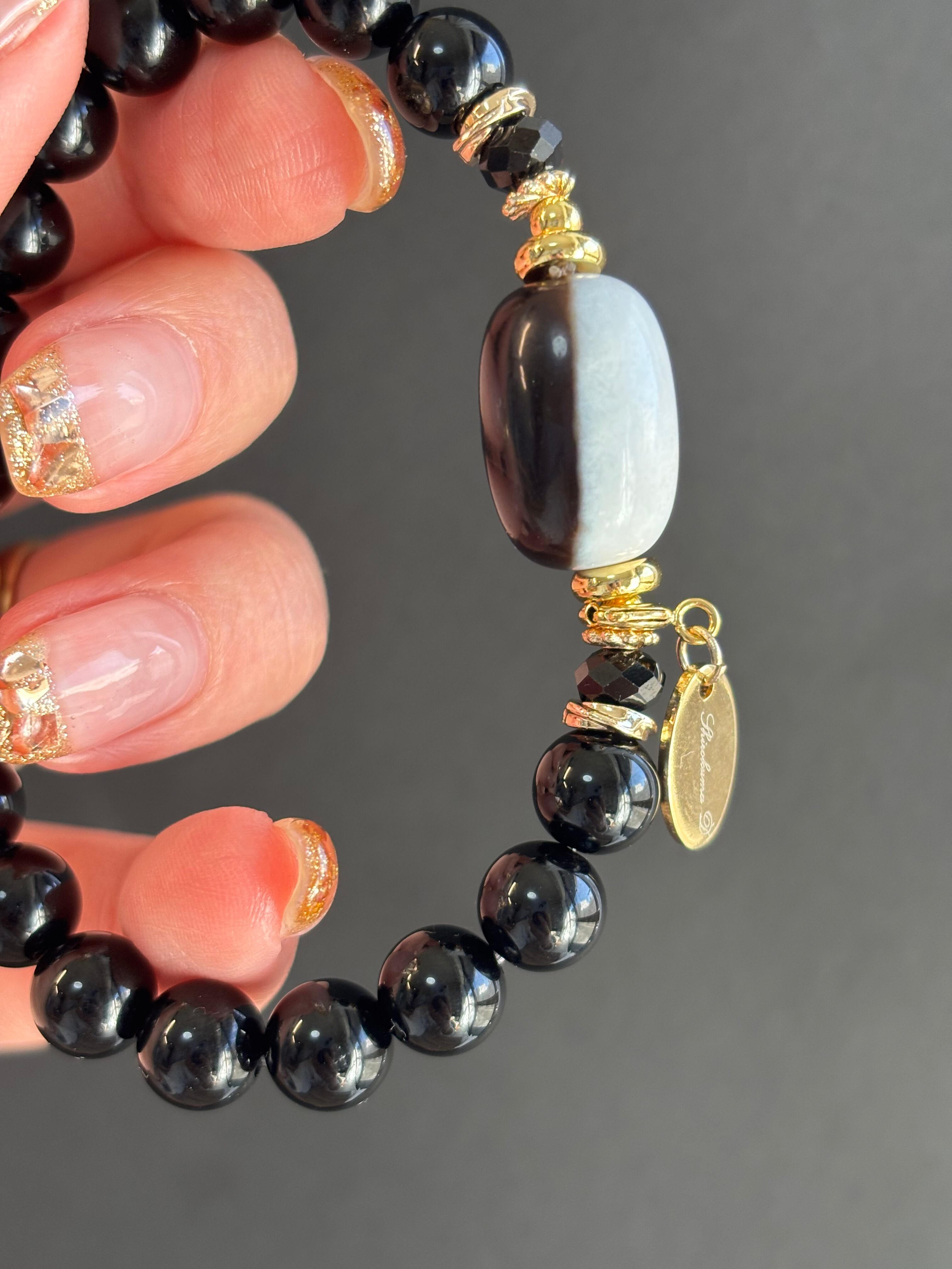 黒白天珠 モリオン ブラックスピネル デザインブレスレット