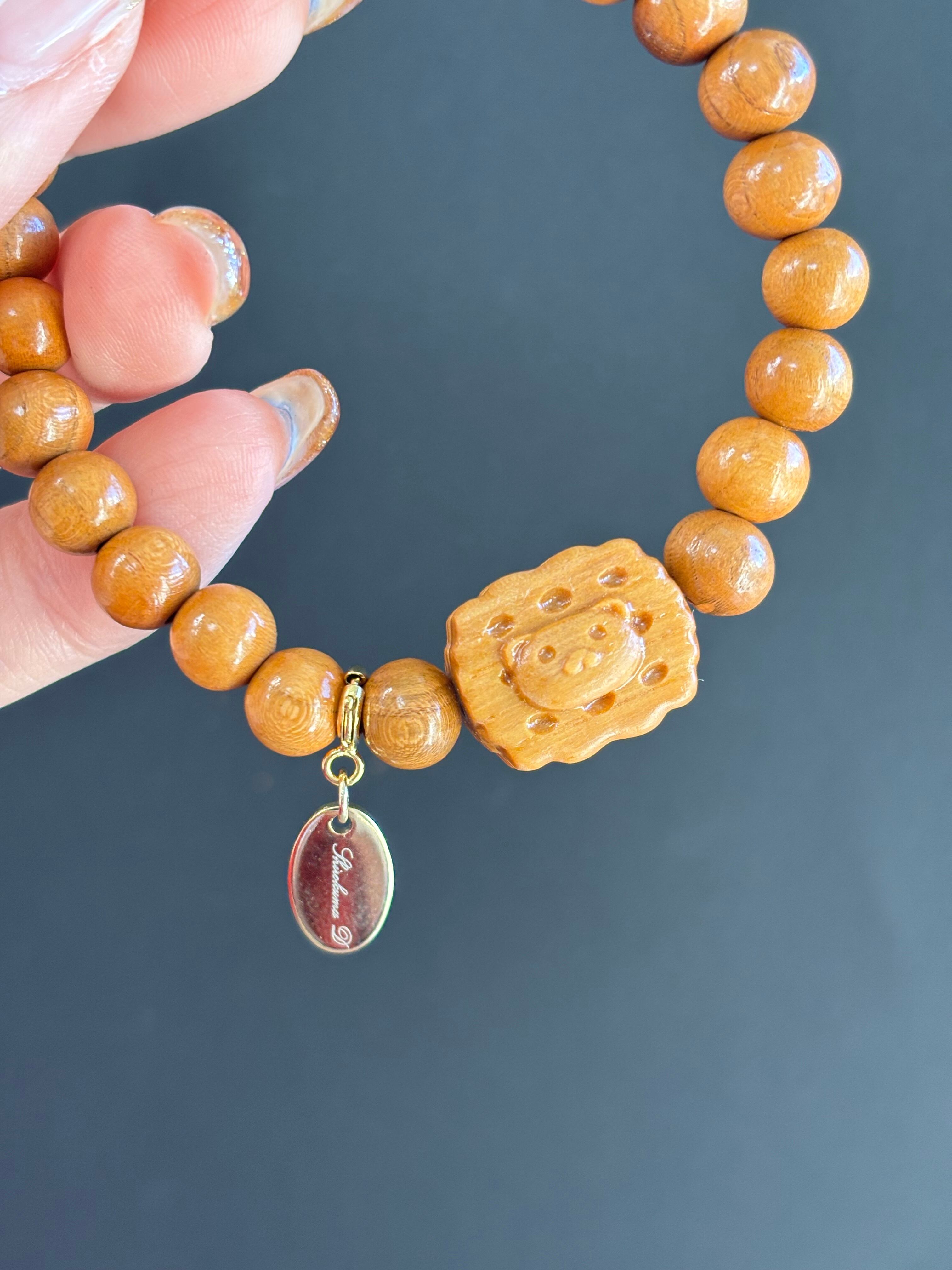 優しいカラーの桃の木の温かみある可愛いクッキーくまのブレスレットです( *´꒳`*)