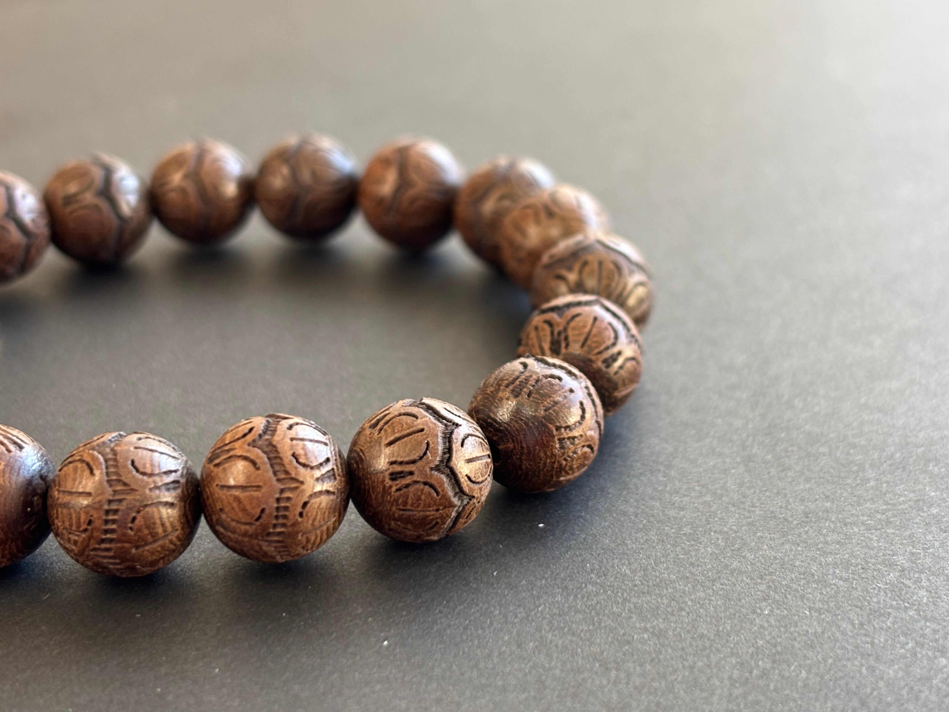 ミニサイズの羊眼天珠をトップにブレスレット部分は蓮彫りの六道木を使ったブレスレットです( *´꒳`*)