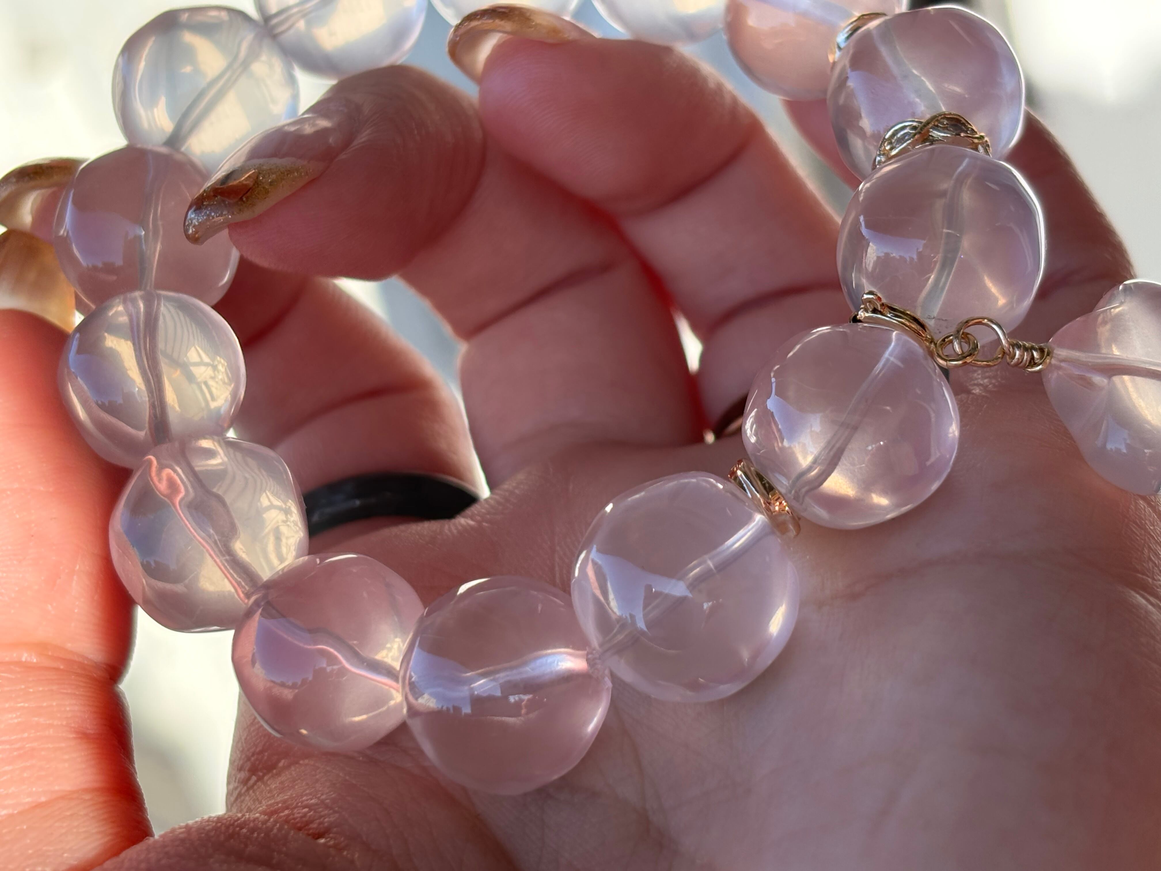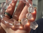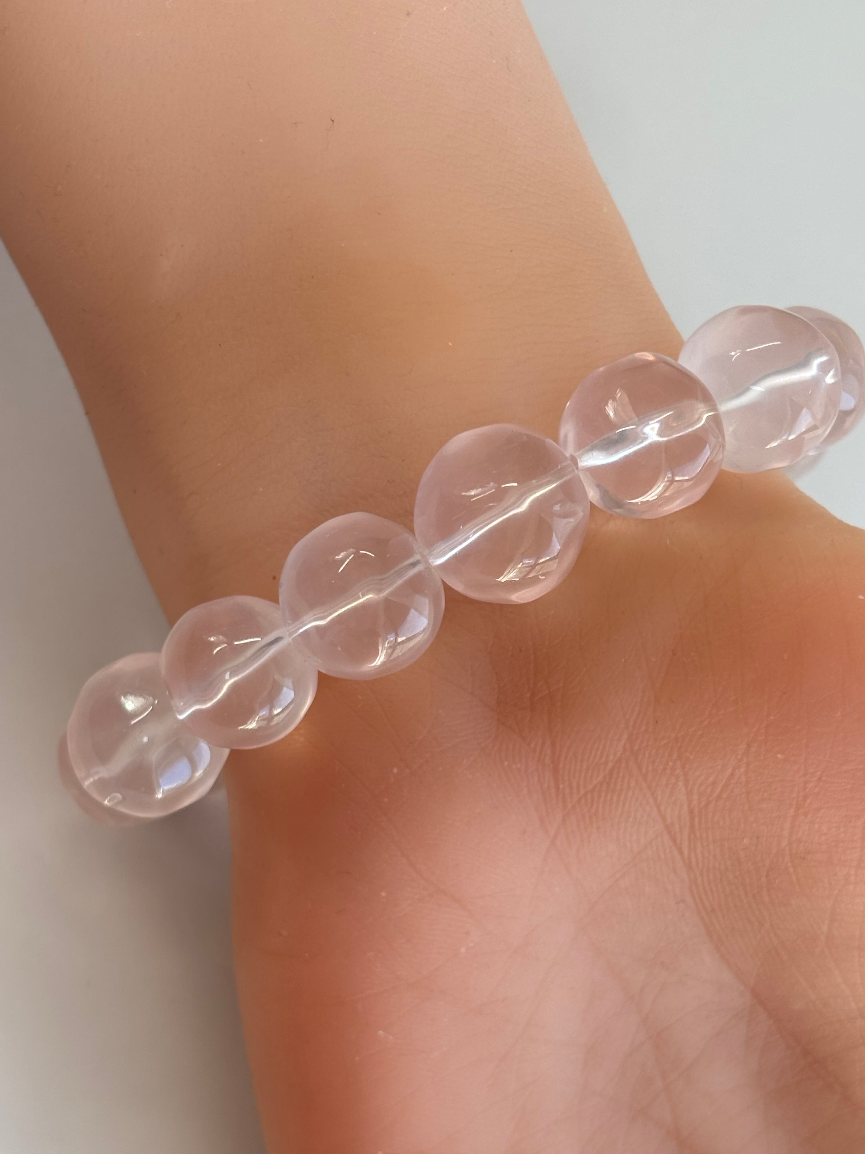 高品質なモザンビーク産地の透明感抜群のローズクォーツにポコポコとしたカットが施されており 水面の模様のようなうるうるとしています。