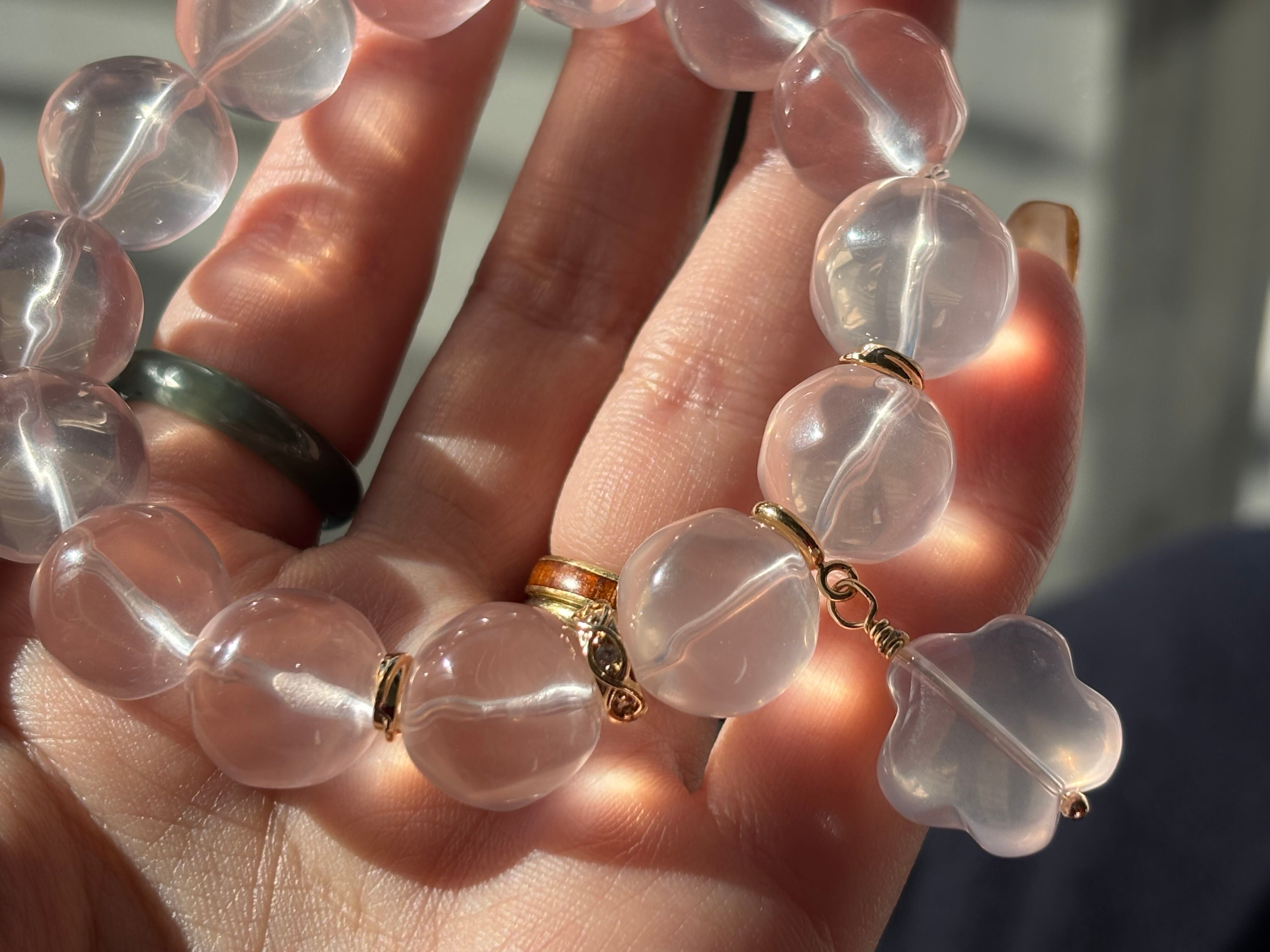 高品質 モザンビーク産 うるうる 六条スター ローズクォーツデザインブレスレット