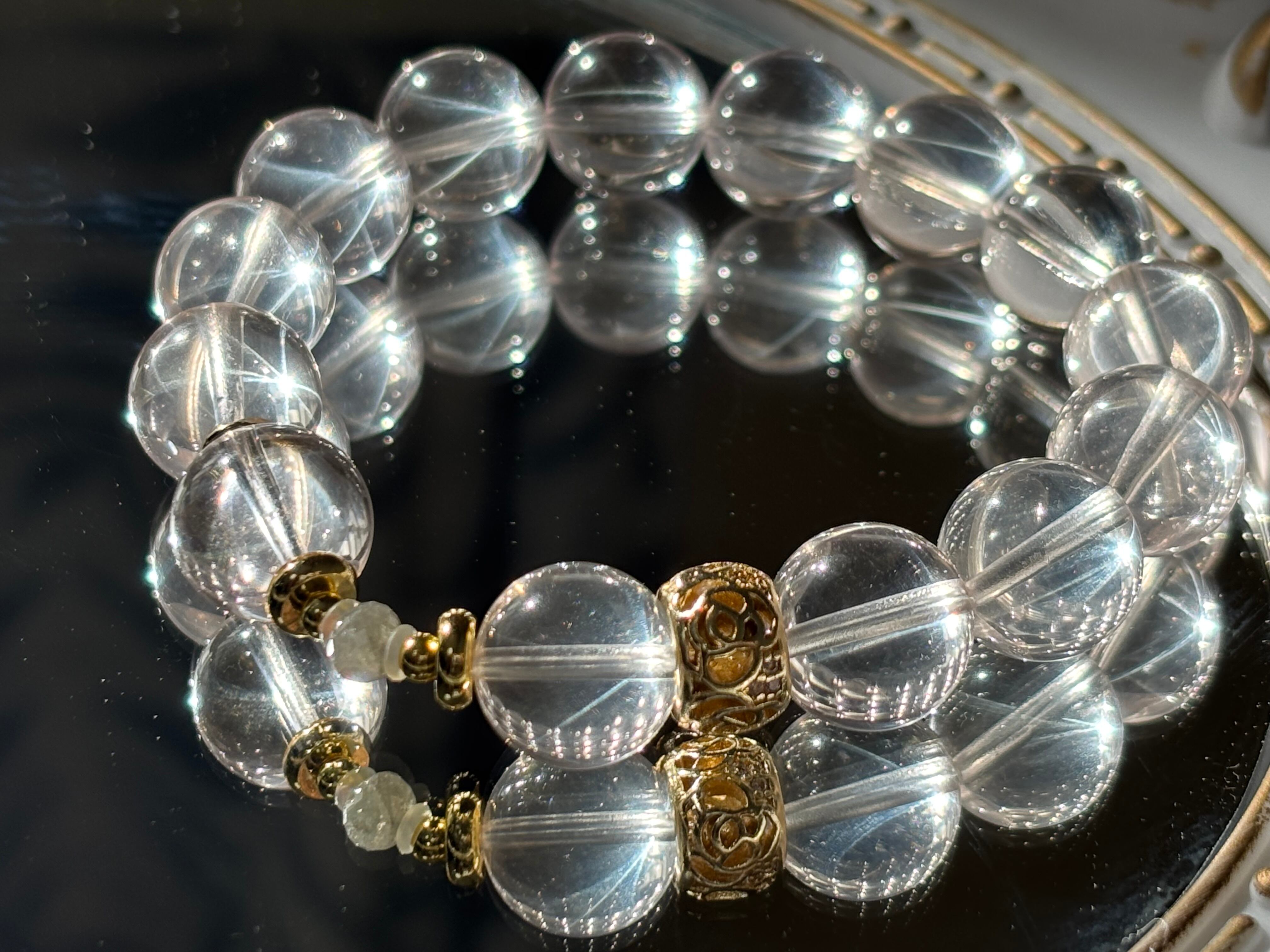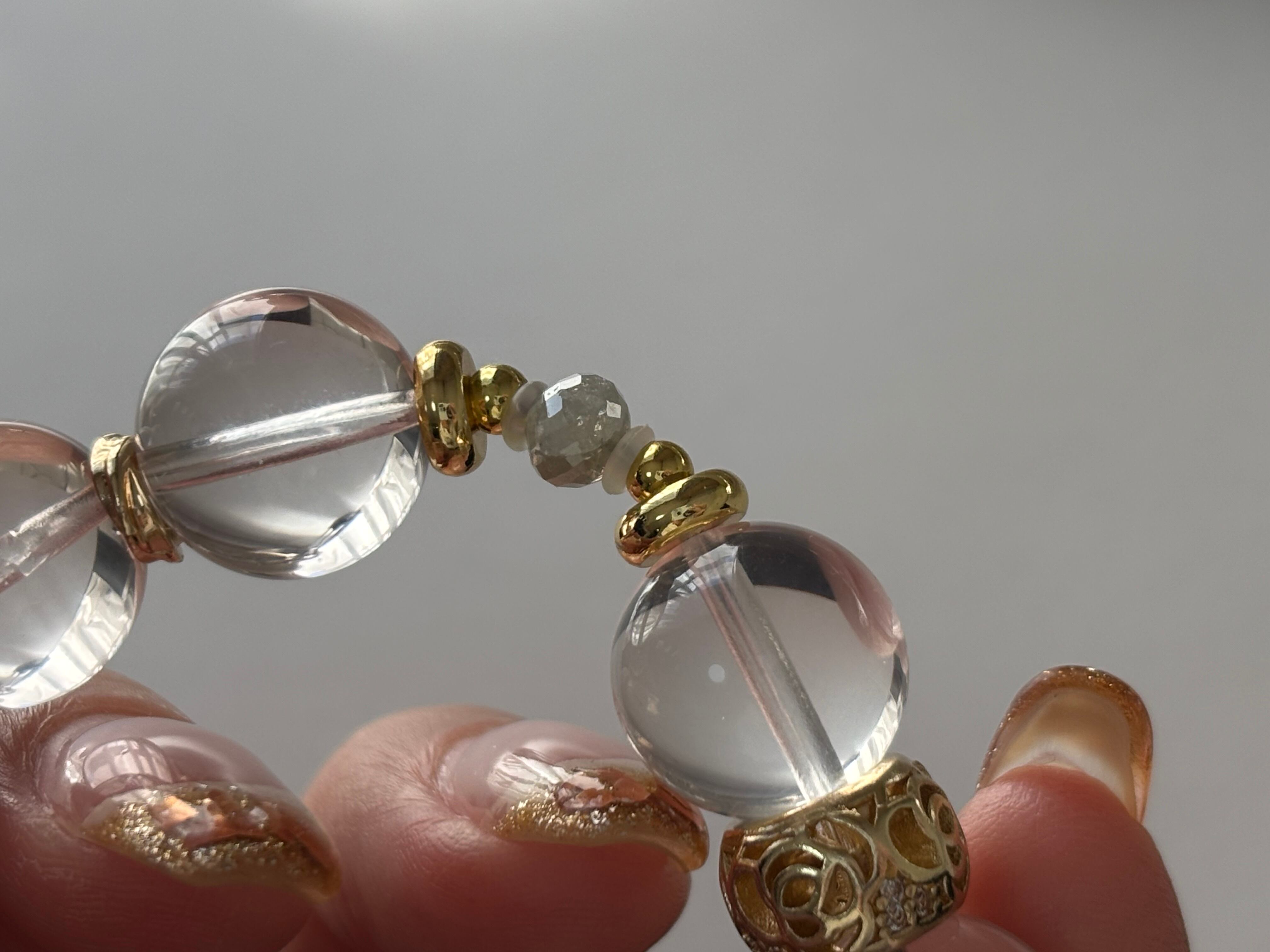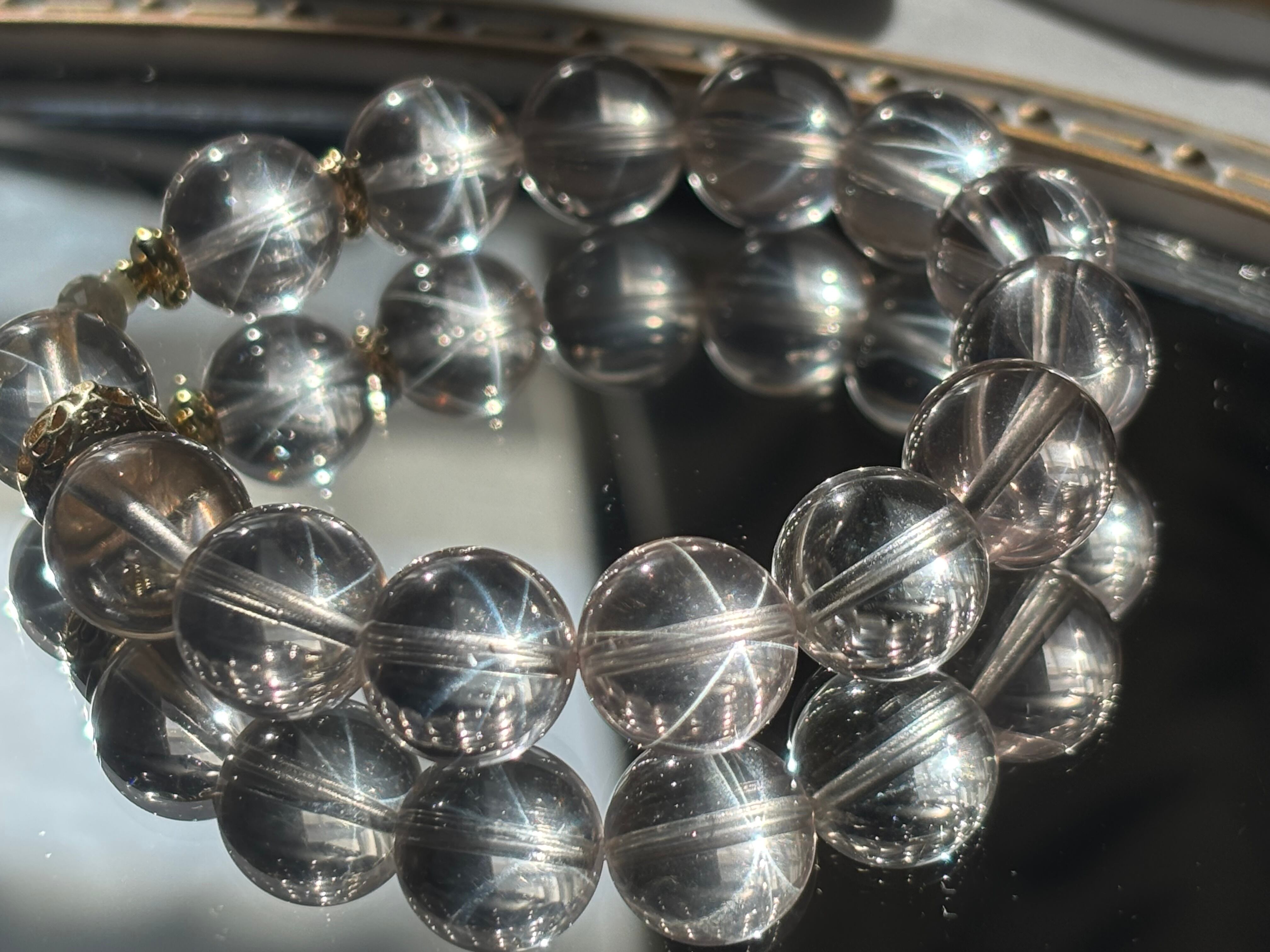 ホワイトダイヤモンド 高品質 6条スター モザンビーク産地 ローズクォーツ ダイヤステリズム デザインブレスレット