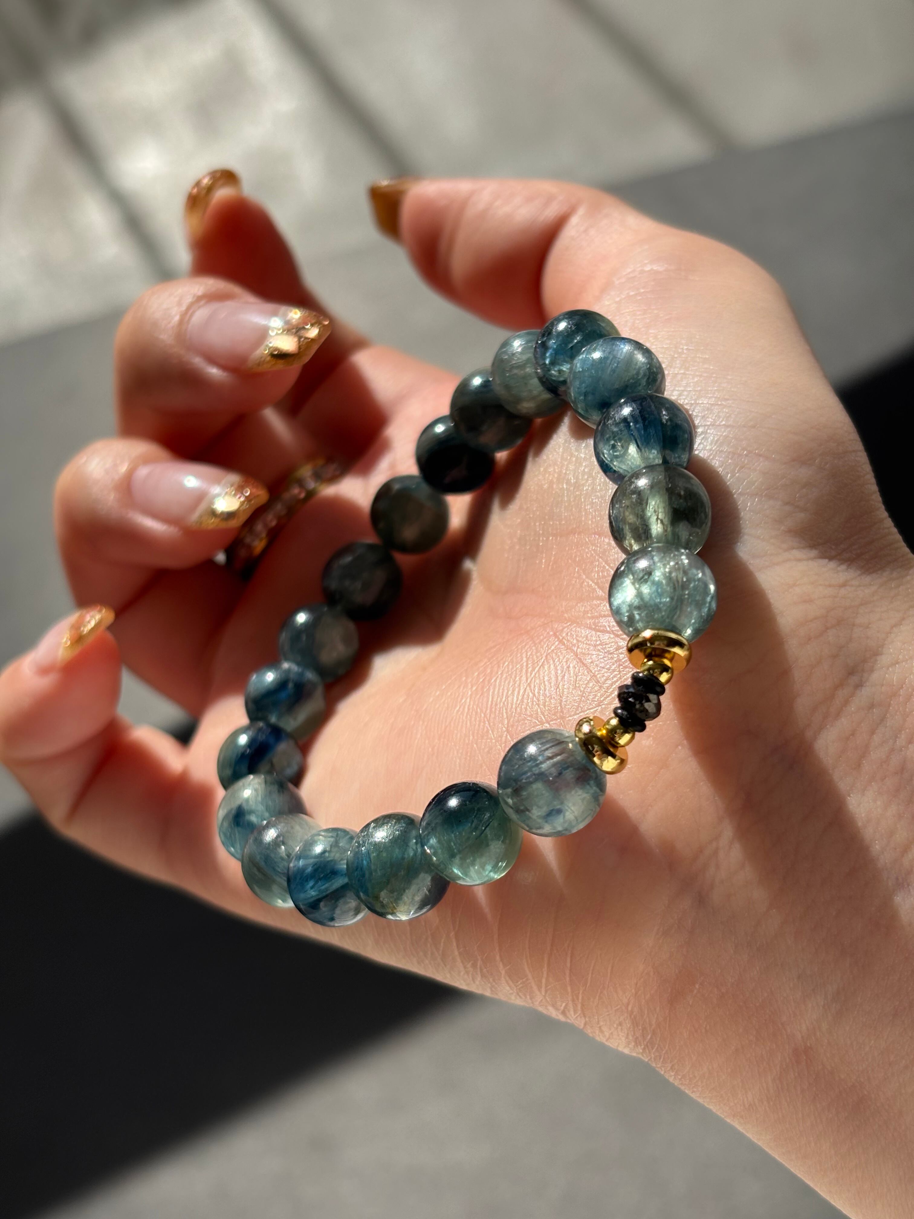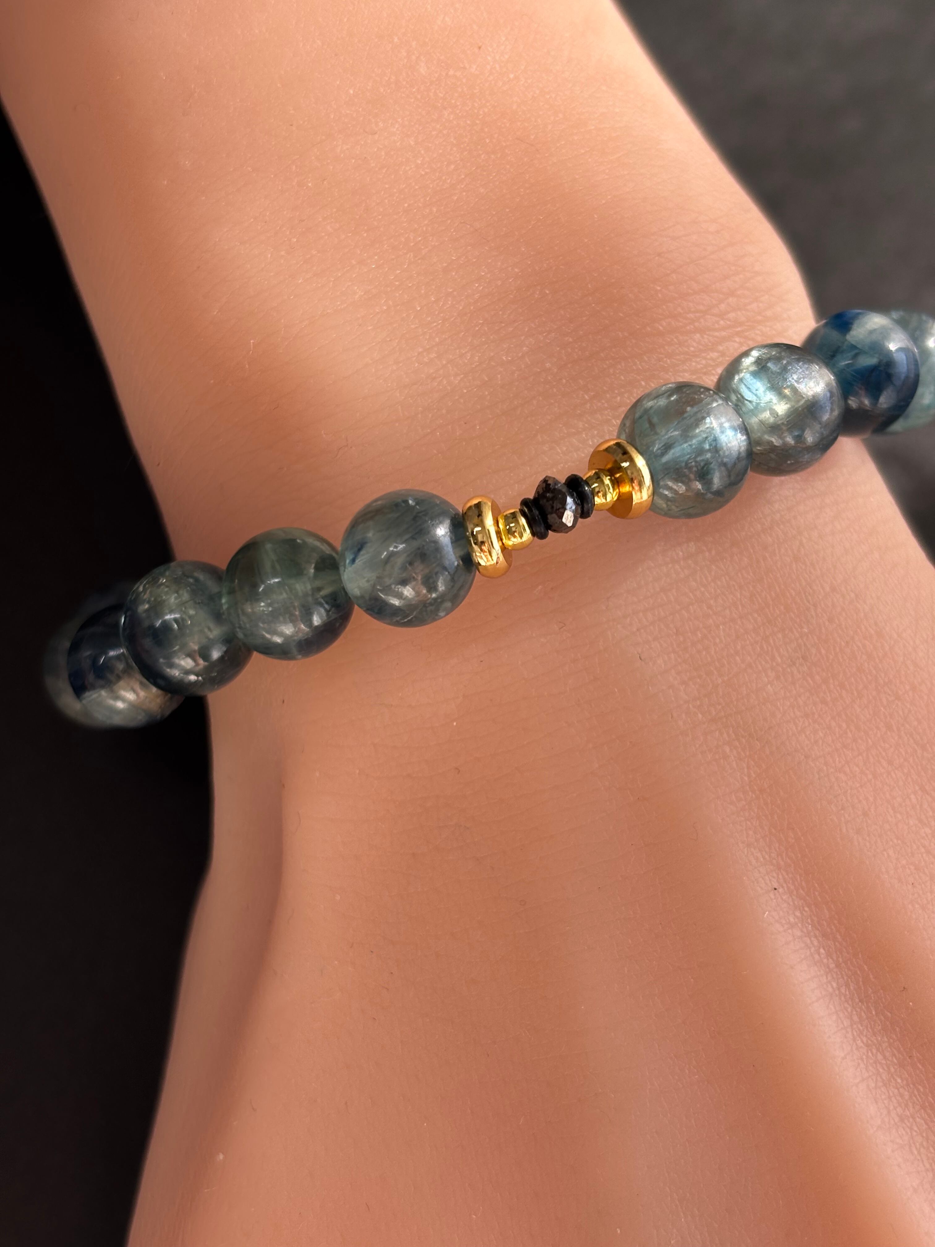 ブラックダイヤモンド ブルーグリーンカイヤナイト デザインブレスレット