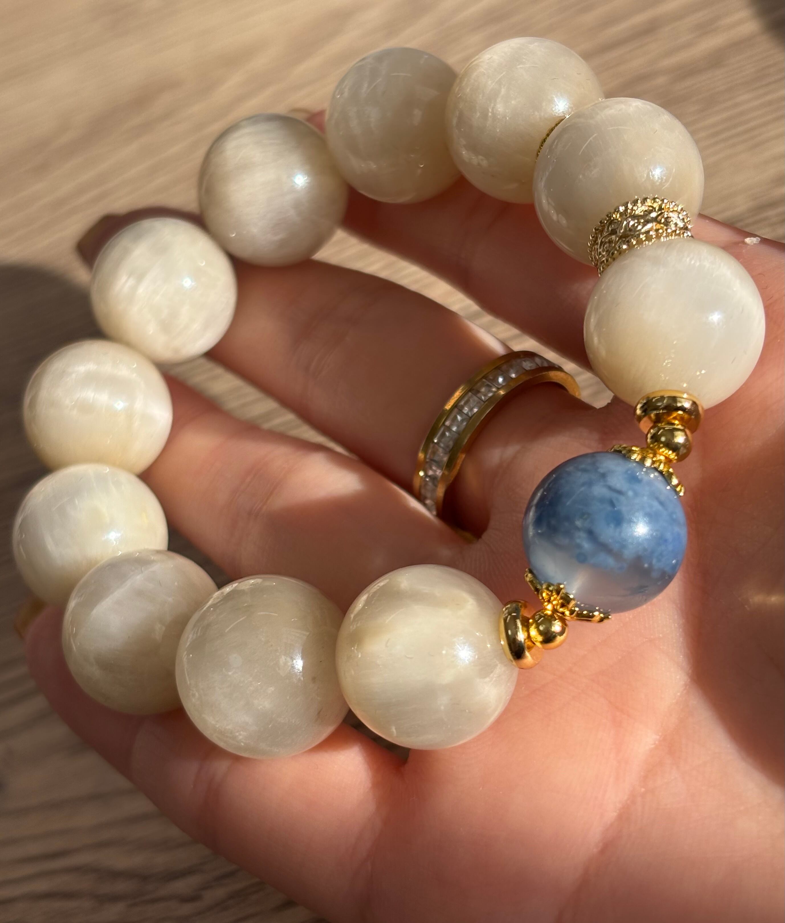 ブレスレット部分はキャッツが全体的に出るホワイトファイバラスクォーツです。