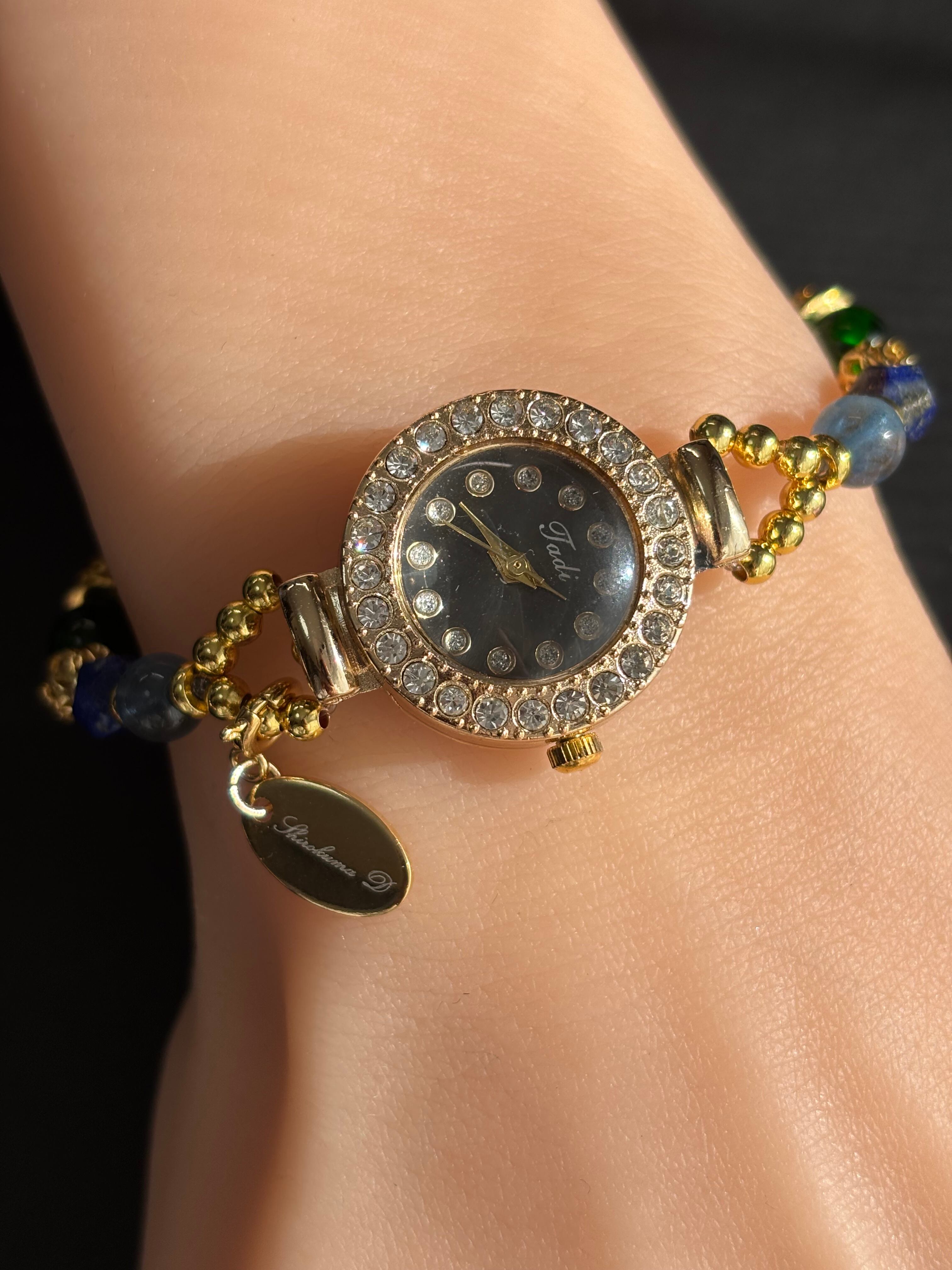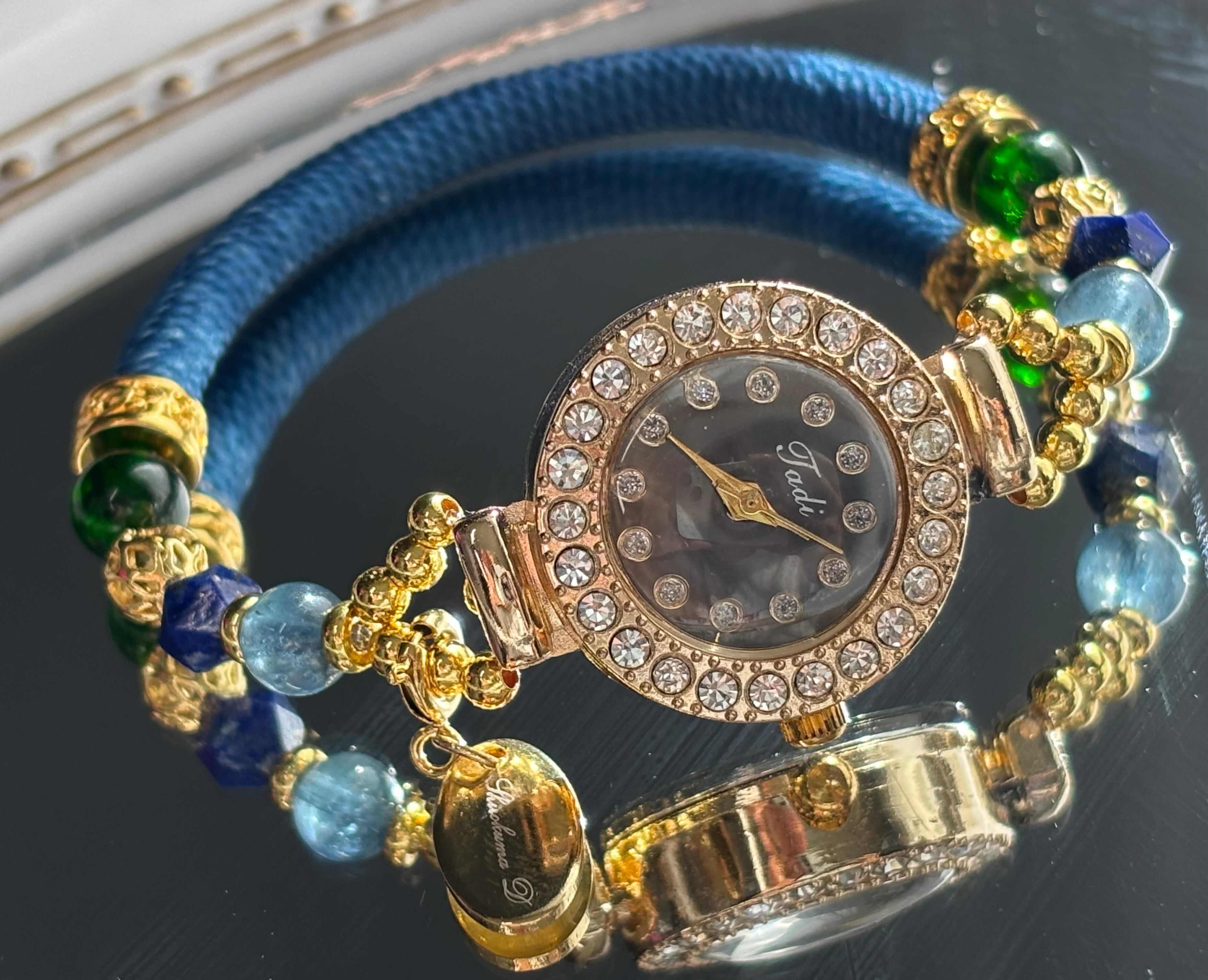 天然石 時計 ワインドコード アクアマリン クロムダイオプサイト ラピスラズリ デザインブレスレット