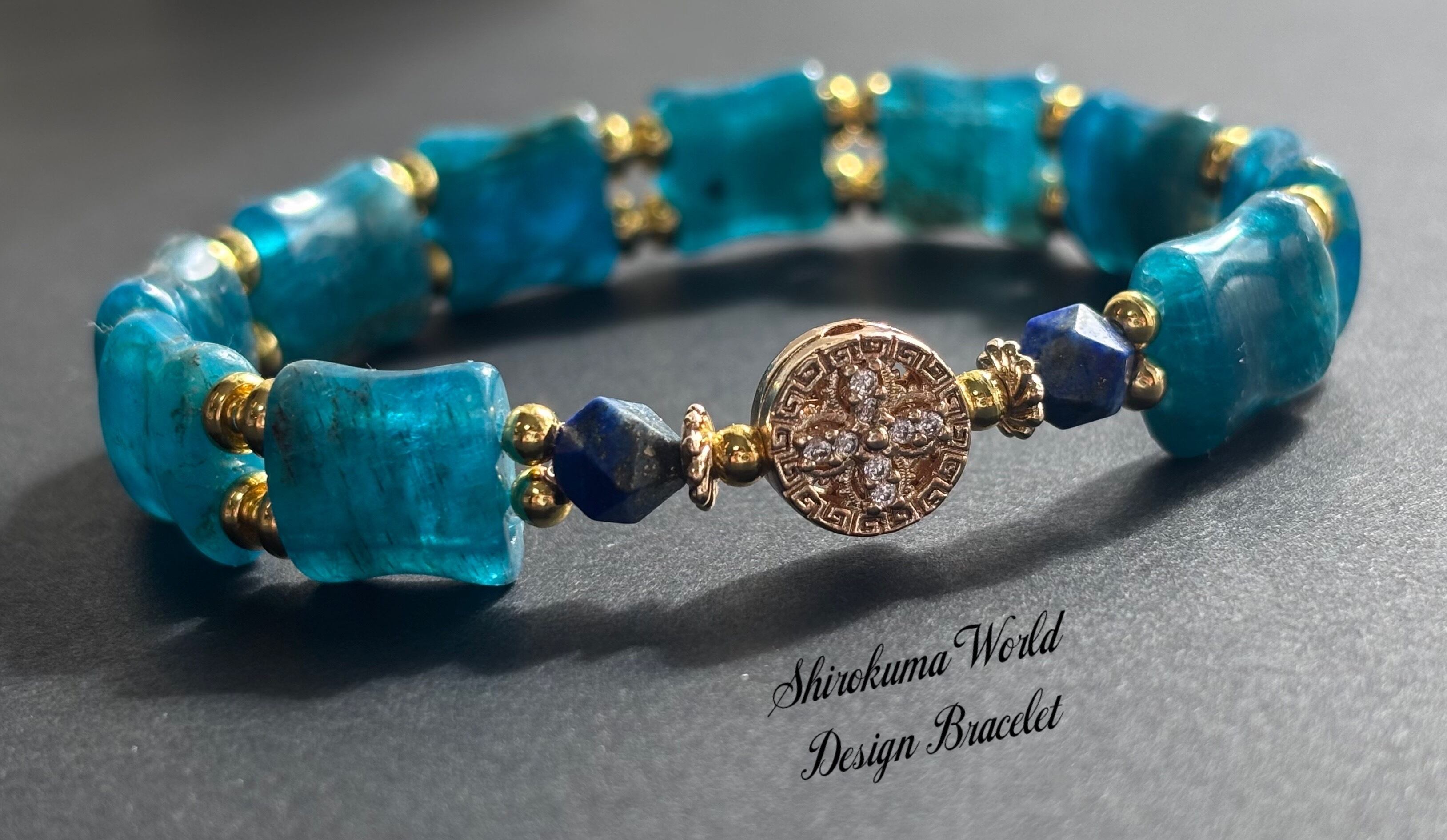 ブルーアパタイト ラピスラズリ バングル デザインブレスレット