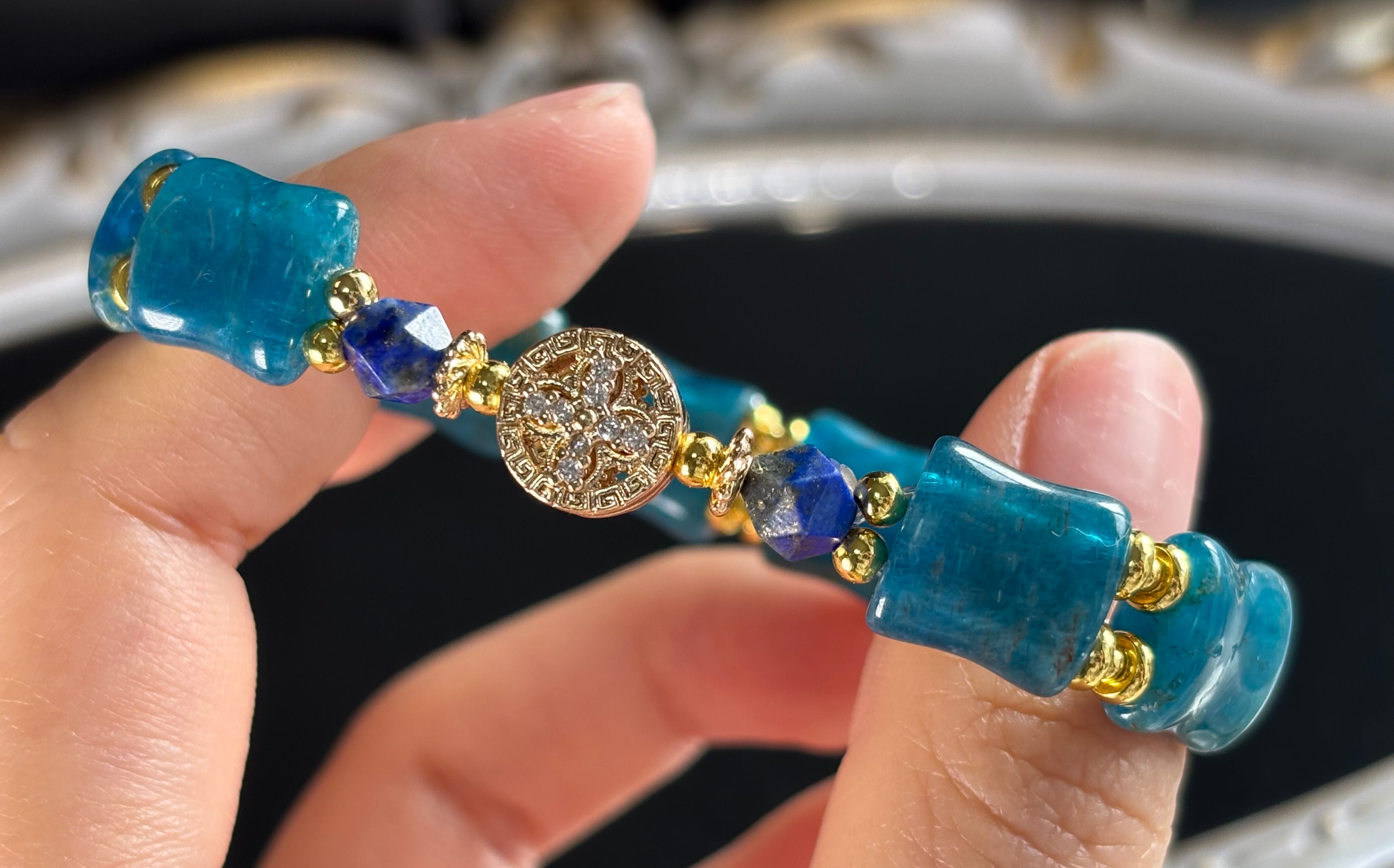 透け感のある部分もある鮮やかなブルーの綺麗なアパタイトのバングルです-♪